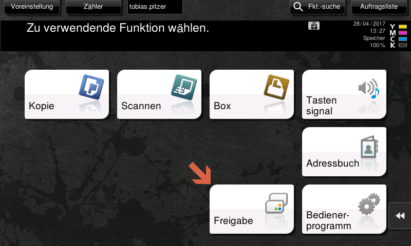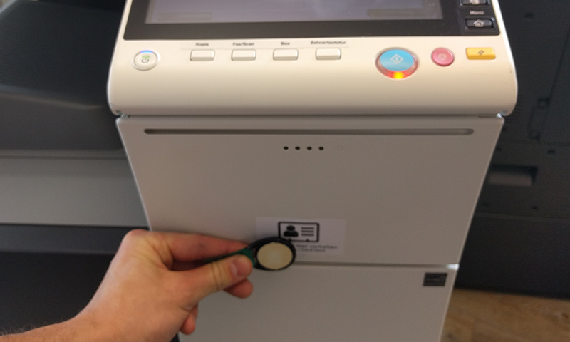 Dieser wird dann nicht direkt ausgedruckt, sondern auf dem Server zurückgehalten. Zum Ausdrucken muss sich der Benutzer an einem beliebigen Gerät anmelden.