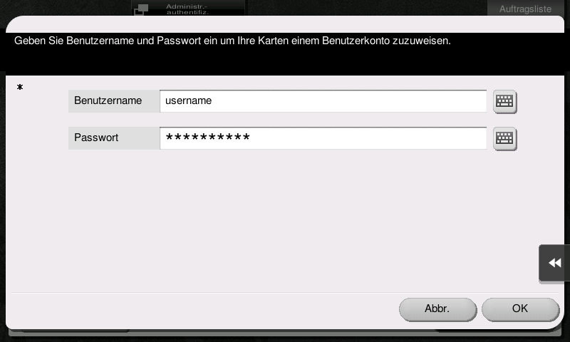 Geben Sie dort Ihren Benutzernamen und Ihr Kennwort ein. Der Chip / Karte wird daraufhin mit Ihrem Benutzerkonto verknüpft.